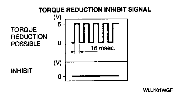 4. With no electrical load operating, inspect the torque reduction inhibit signal at the ABS/TCS control module 2R terminal using an oscilloscope.