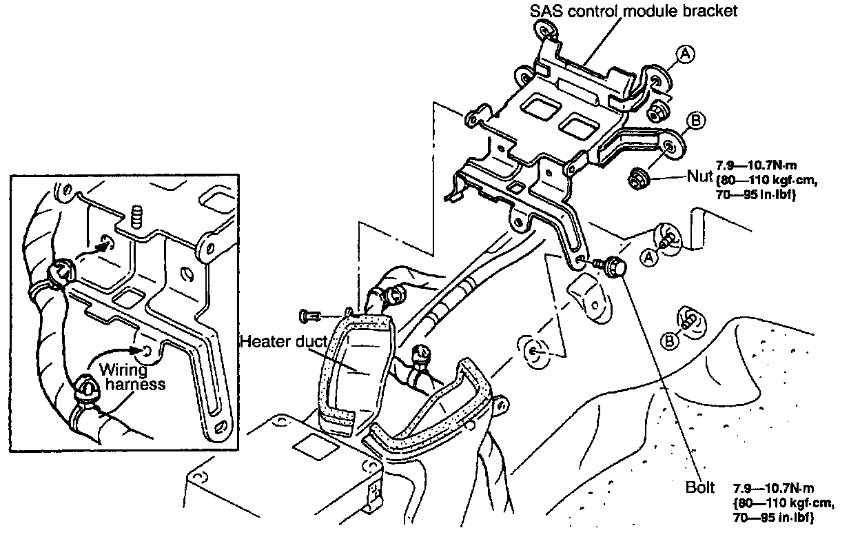 WARNING:- Handling the SAS control module improperly can accidentally deploy the air bag module, which may seriously injure you. Read AIR BAG SYSTEM SERVICE WARNINGS before handling the SAS control module. (See AIR BAG SYSTEM SERVICE WARNINGS.)Service Precautions