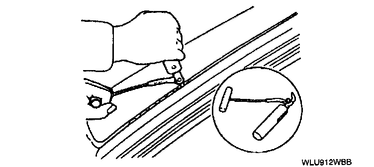 11. Working with another person, saw through the sealant around the edge of the glass. Use a long sawing action to spread the work over the whole length of wire to prevent it from breaking. Make sure the wire does not rub on the body.