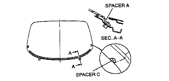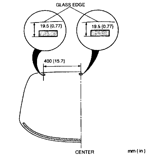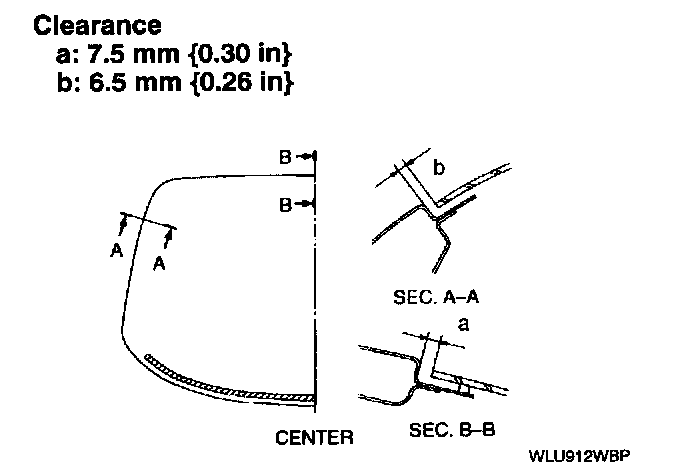 8. Temporarily install the glass onto the body and adjust the glass-to-body clearance as indicated.