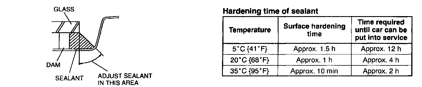 12. Apply an 11 mm {0.43 in} high bead of sealant around the entire circumference of the glass as shown. Keep the bead of sealant smooth and even, shaping it with a spatula where necessary.