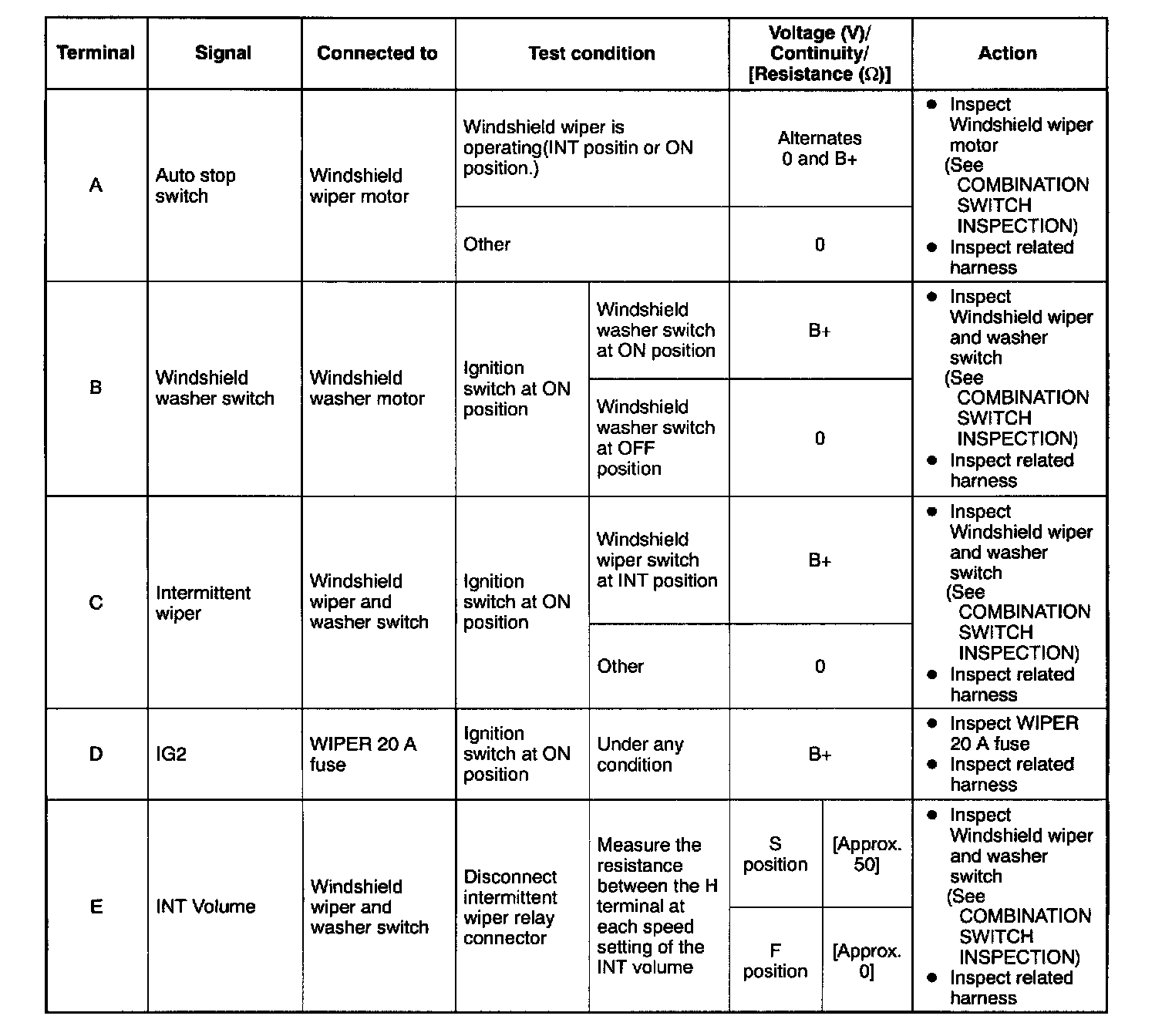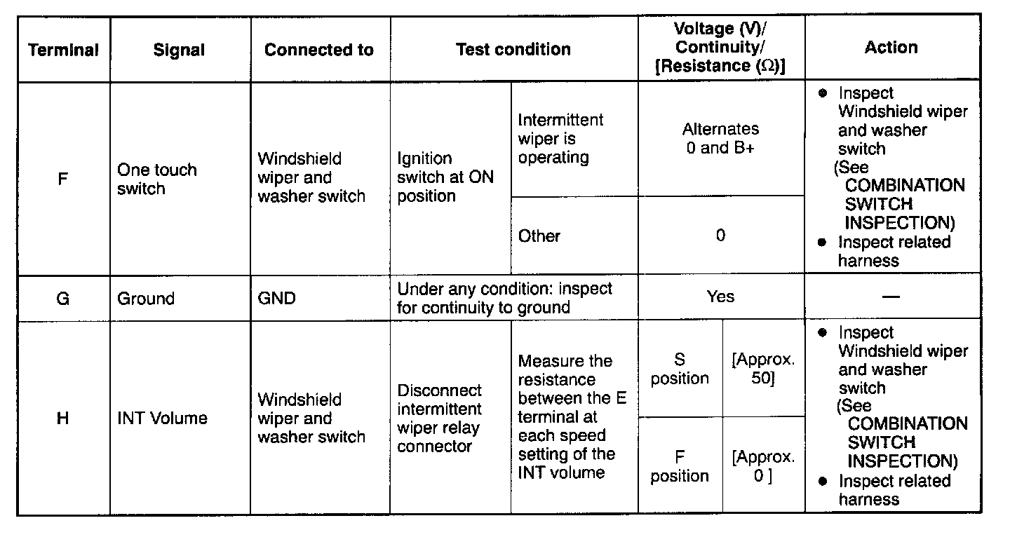 Wiper Relay: Testing and Inspection