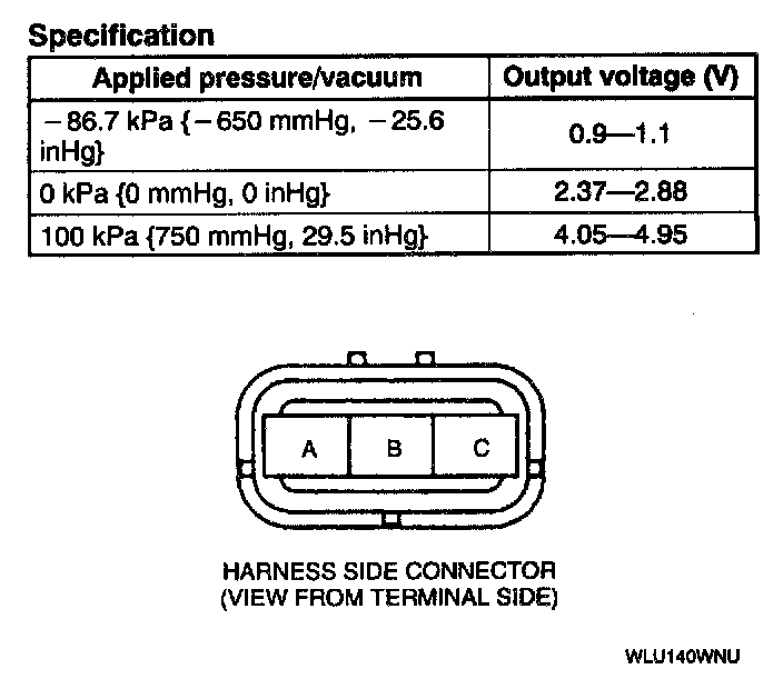 ii. MAP sensor terminal A voltage: Ground (Below 1.0 V)