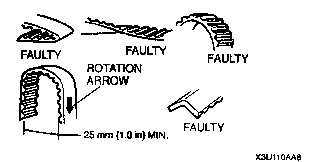 Caution: The following will damage the belt and shorten its life: forcefully twisting it, turning it Inside out, or allowing oil or grease on it.
