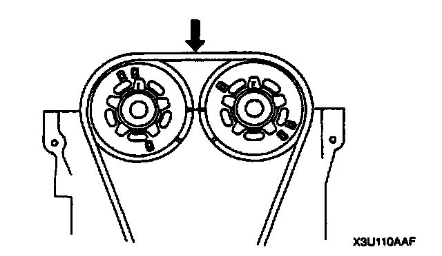 8. Inspect the belt deflection at the point indicated by applying moderate pressure 98 N (10 kgf, 22 lbf).