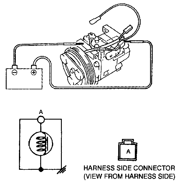 2. Connect B+ to terminal A of magnetic clutch and ground to the A/C compressor body.
