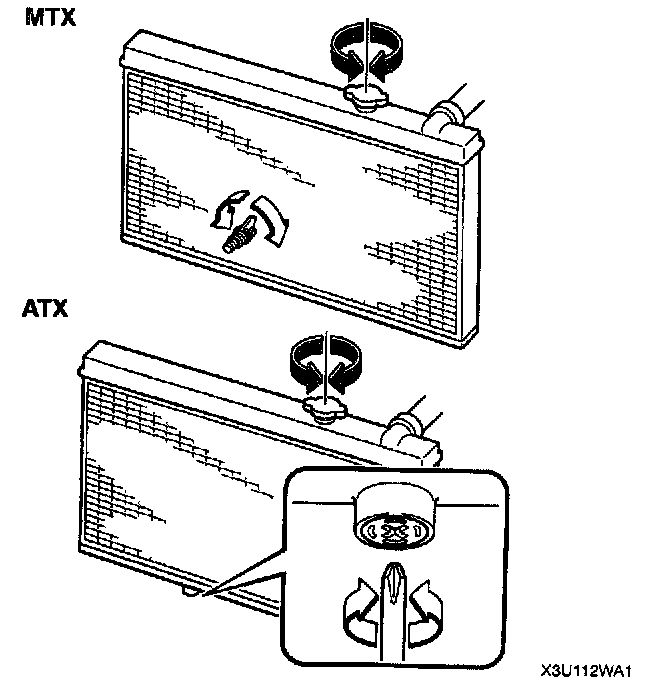2. Remove the radiator cap and loosen the radiator drain plug.