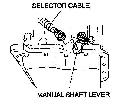 20. Verify that the selector lever range position and TR switch are aligned, then connect the selector cable.