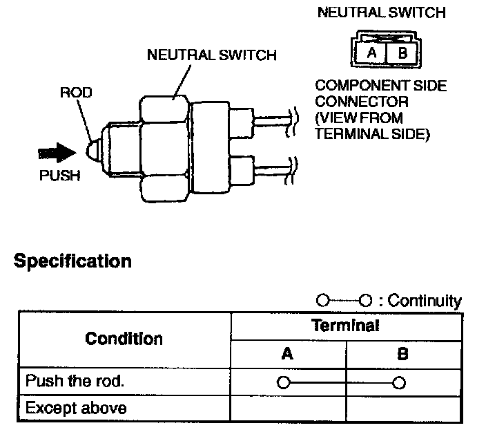 3. Inspect for continuity between the neutral switch terminals A and B using an ohmmeter.