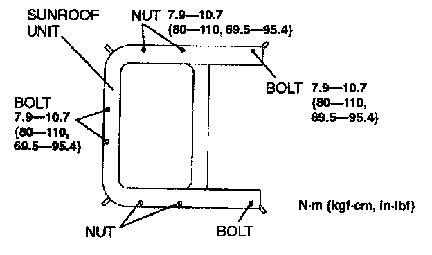 6. Remove the bolts and nuts, and then remove the sunroof unit.