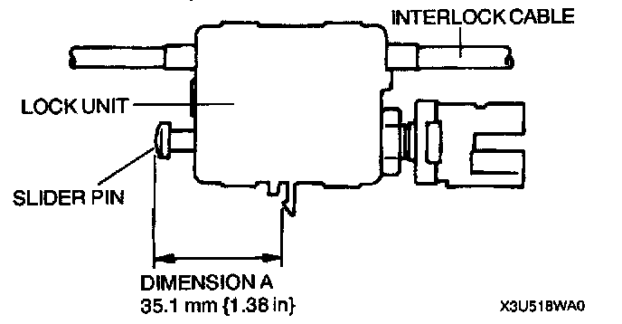 - If the slider pin protrusion is as specified below (dimension A), verify that the interlock cable moves freely in the lock unit.