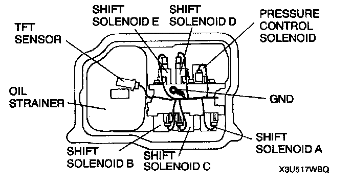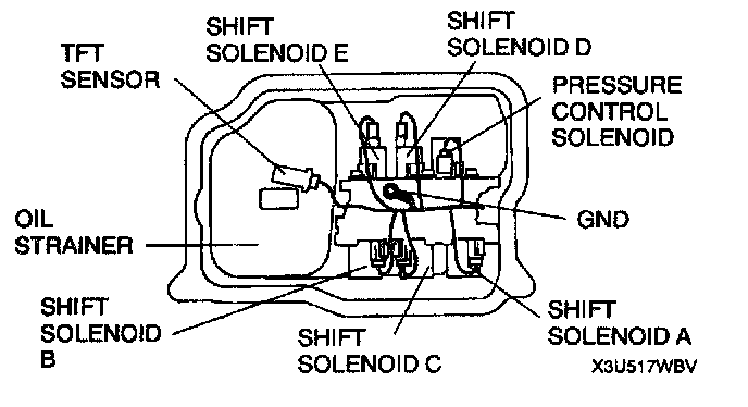 5. Disconnect the solenoid connectors and TFT sensor connector and GND.