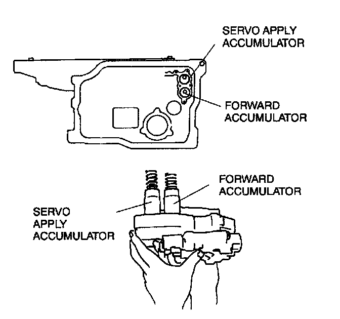 1. Install the accumulator springs and accumulator into the transaxle case.