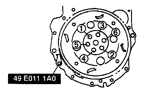 6. Tighten the drive plate installation bolts in 2 or 3 steps as shown.
