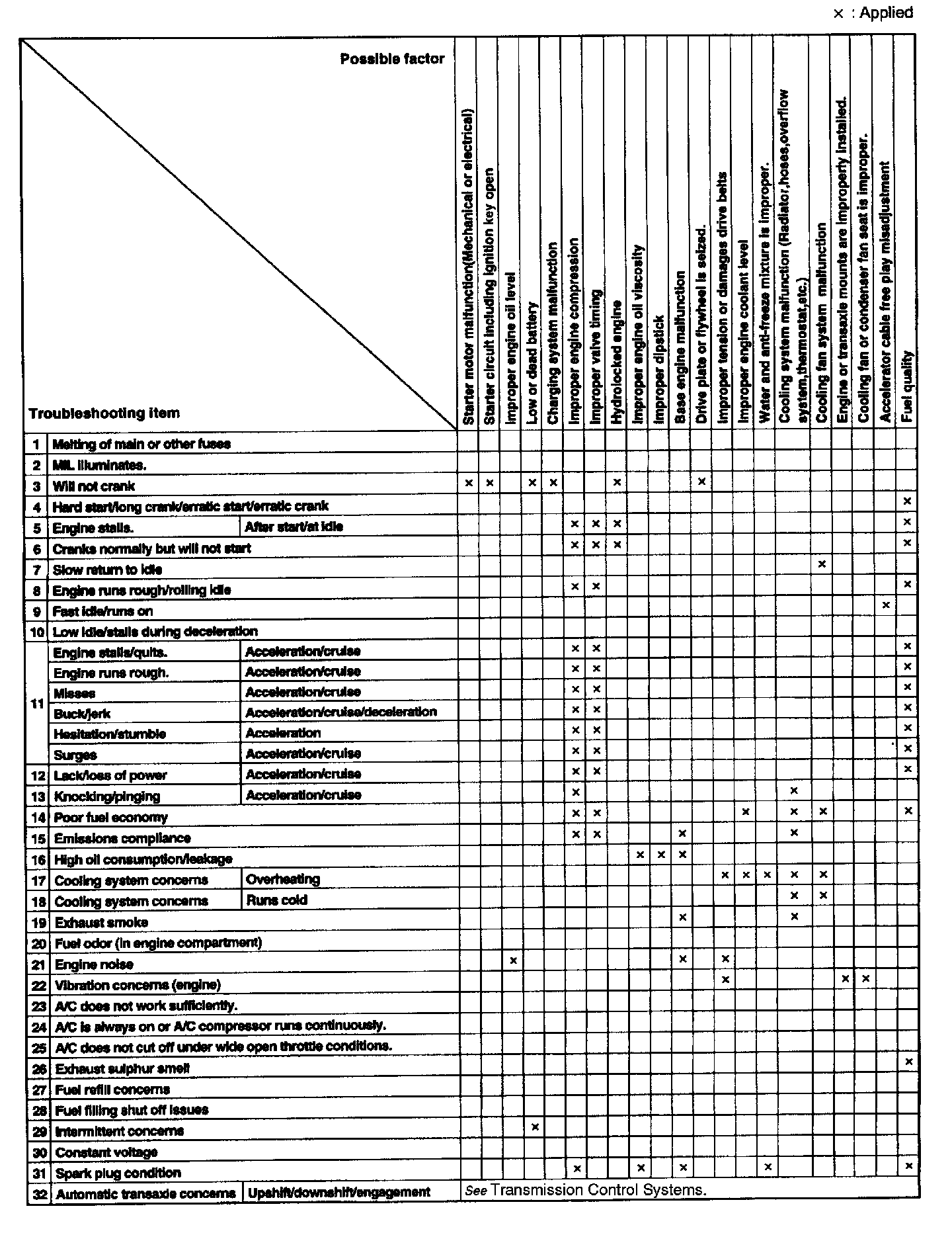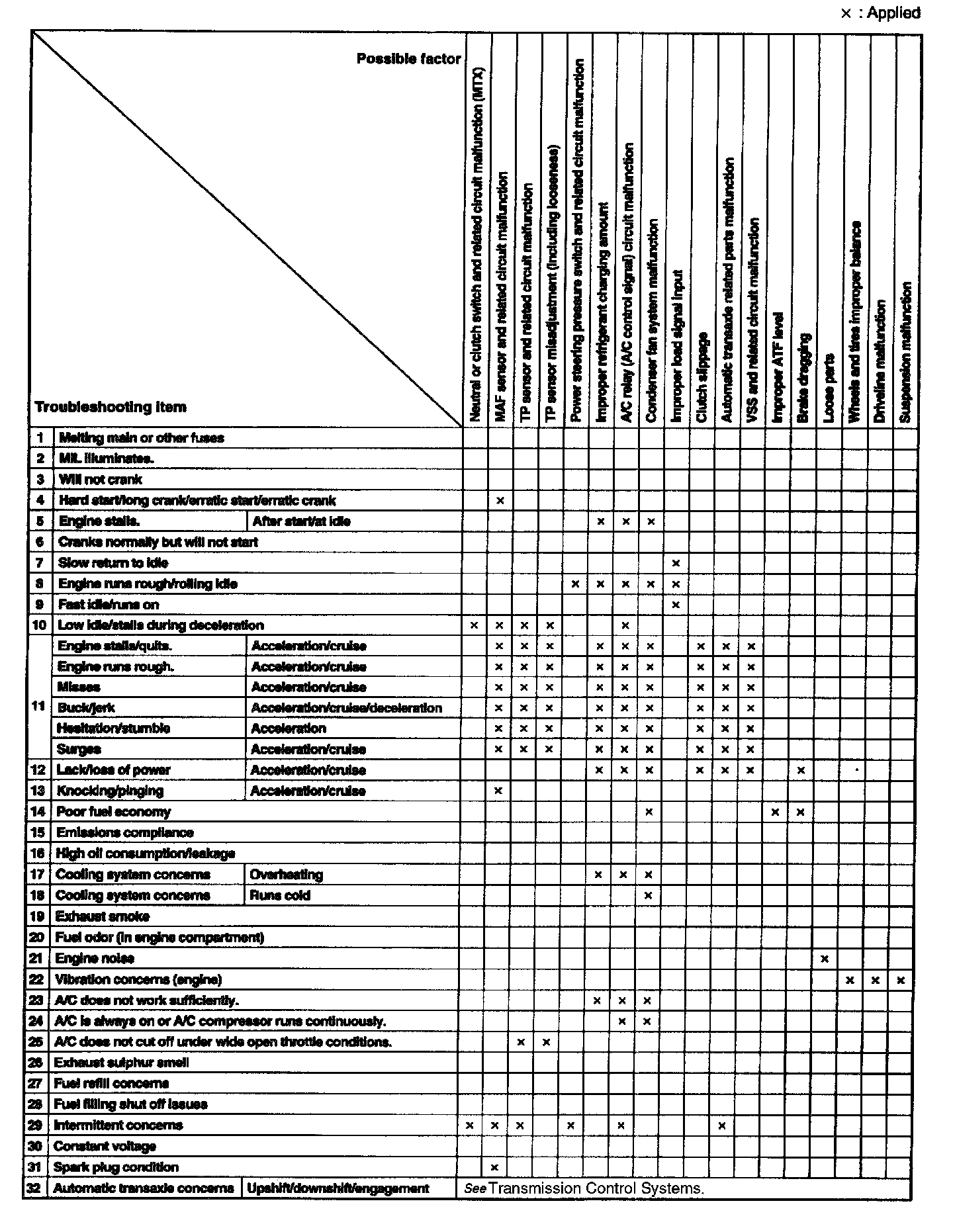 Quick Diagnostic Symptom Chart