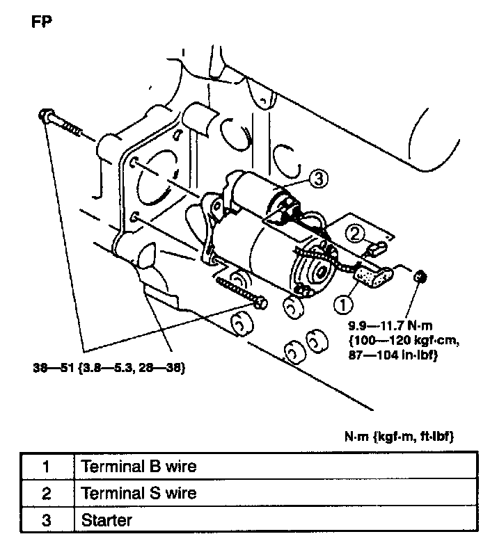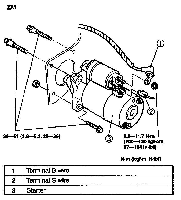 WARNING: When the battery cables are connected, touching the vehicle body with starter terminal B will generate sparks. This can cause personal injury, fire, and damage to the electrical components. Always disconnect the battery before performing the following operation.1. Disconnect the negative battery cable.