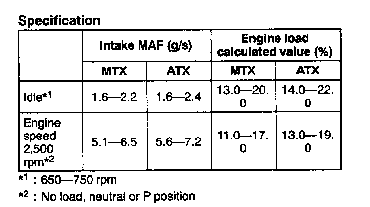 NOTE: The scan tool shows the MAF rate and load value.