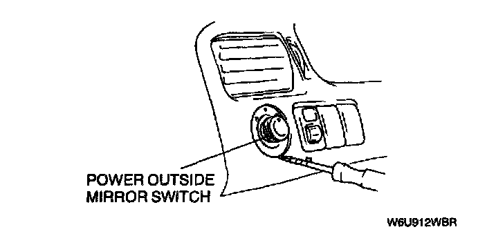 2. Insert a tape-wrapped, flathead screwdriver between the power outside mirror switch and the meter hood.