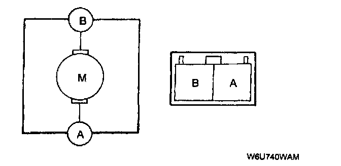3. Connect battery positive voltage to terminal B and ground to terminal A of the blower motor and verify its operation.