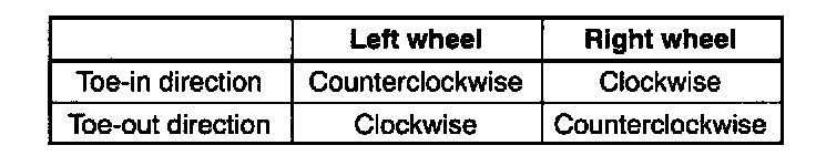 3. Turn the adjusting cam bolt as indicated to adjust the toe-in.