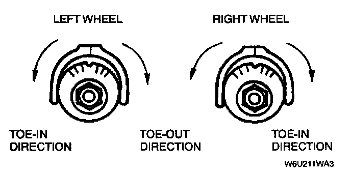 Note: Turning the adjusting cam bolt one graduation changes the toe-in about 2.9 mm (0.11 inch) (0°18').