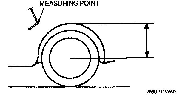 7. Measure the height from the center of the wheel to the fender brim. The difference between the left and right measurement must not exceed 10 mm (0.39 inch).