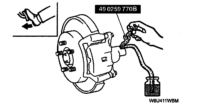 3. Attach a vinyl tube to the farthest bleeder screw and place the other end of the tube in a clear container.