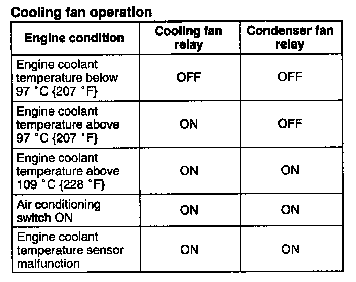 - Open circuit between condenser fan relay and condenser fan motor or fan motor ground.