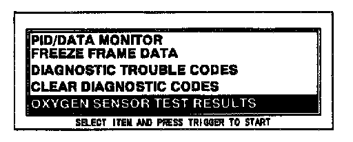 5. Move the cursor to OXYGEN SENSOR TEST RESULTS.