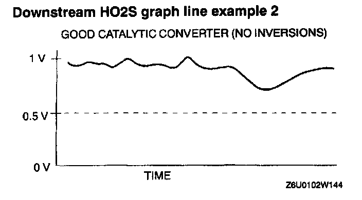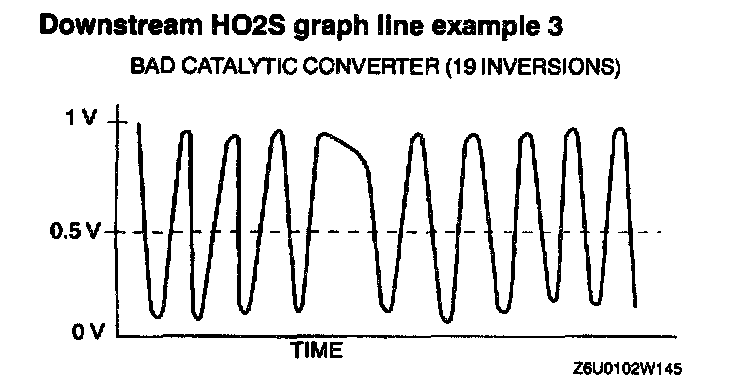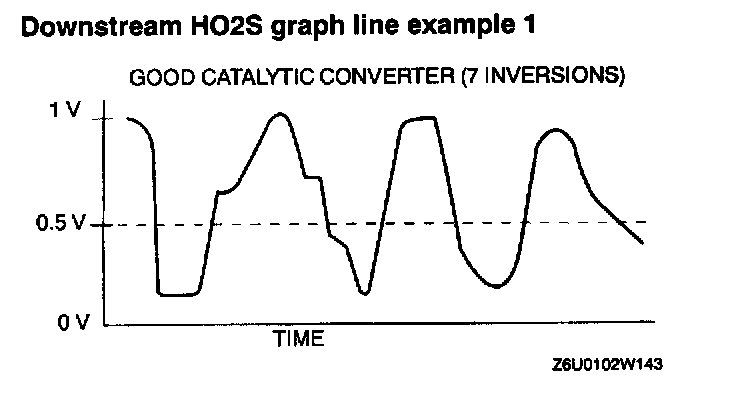10. Count the number of times (inversion) that the downstream HO2S graph line actually crosses the 0.5 V line.