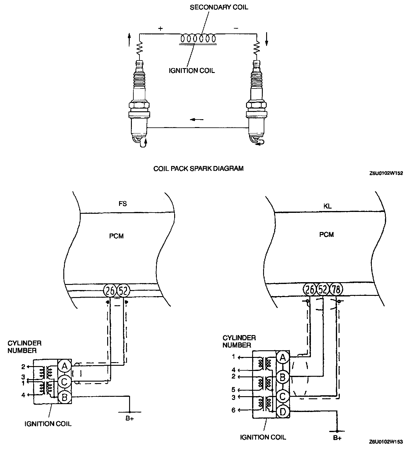 - Each coil ignites two spark plugs at the same time.