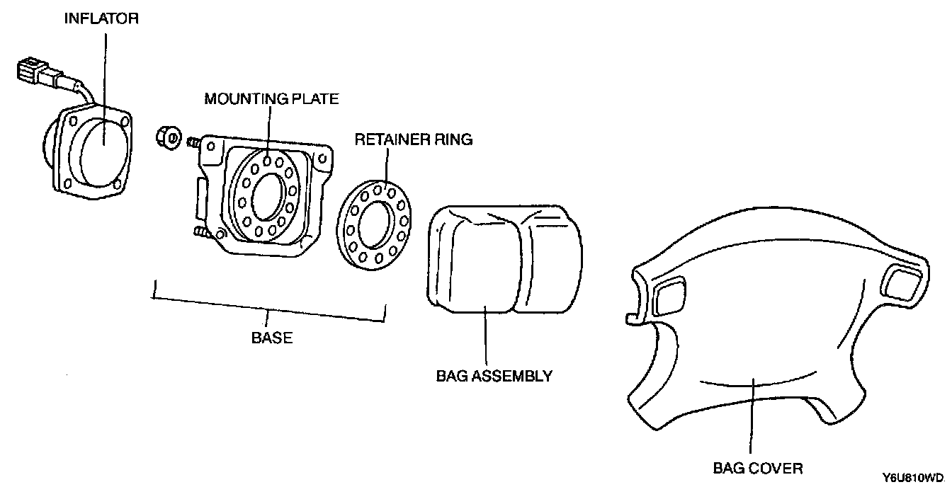- The air bag module consists of the bag assembly, inflator, bag cover, and base.