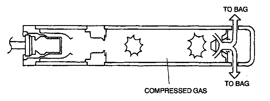 When the inflator receives the signal from the I/O interface, the inflator generates nitrogen gas to deploy the air bag modules. The bags release the nitrogen gas from a vent hole in the back of the bag to reduce shock to the driver and passenger and to allow easier exit from the vehicle.