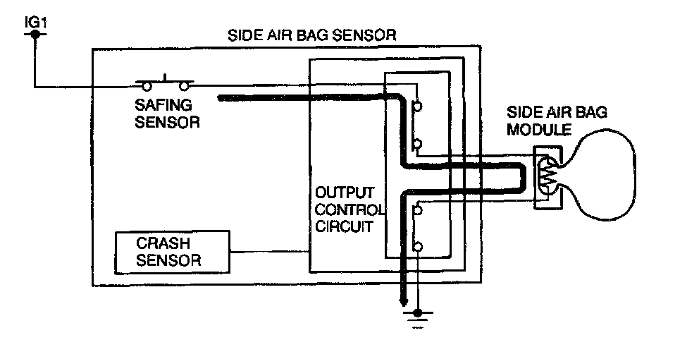 1. The igniter is heated by the current that flows from the side air bag sensor to the igniter. This heats the ignition intensifier.