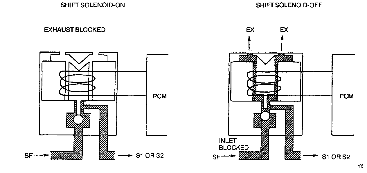 - SS1 and SS2 provide gear selection of first through fourth gears by providing ON/OFF pressure control to the shift valves.