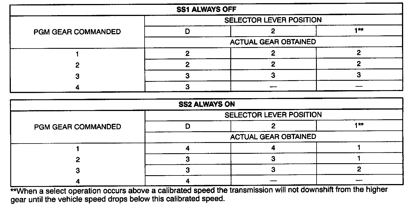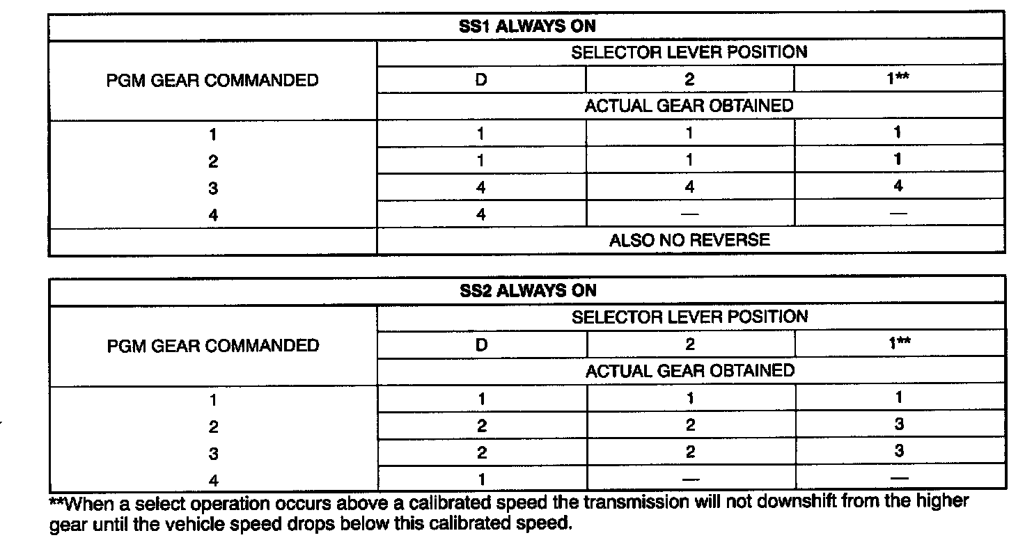- Improper gear selection depending on failure mode and manual lever position. Refer to shift solenoid failure modes.