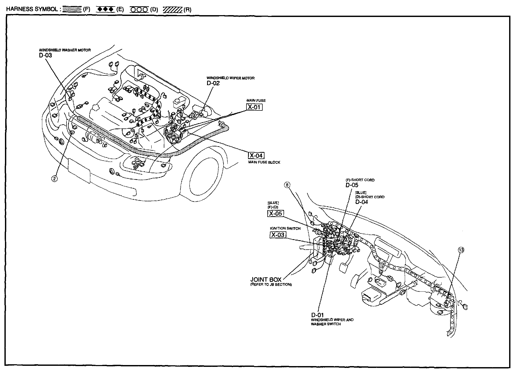 D - Windshield Wiper And Washer Harness / Connector Symbols: