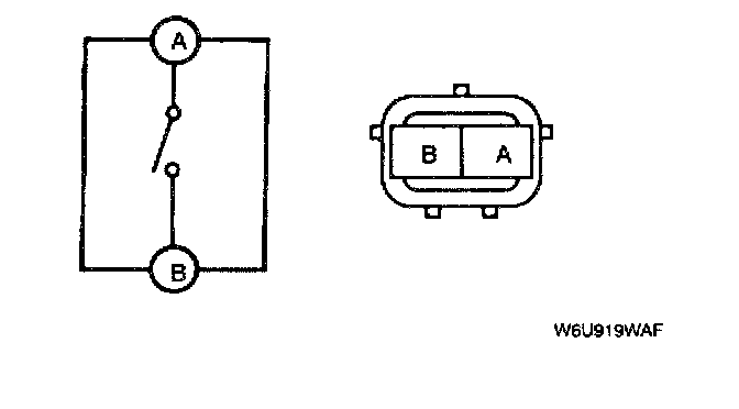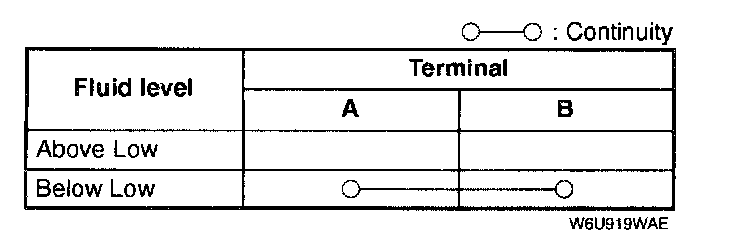 3. Inspect for continuity between the washer fluid-level sensor terminals by using an ohmmeter.