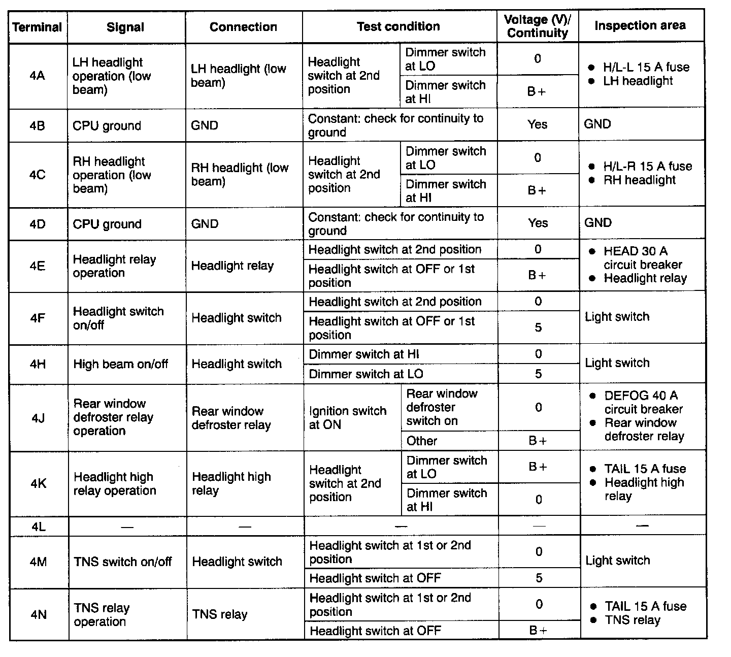 - Disconnect the CPU connector before checking for continuity at terminals 4B and 4D as shown in the figure.