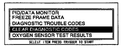 5. Move the cursor to CLEAR DIAGNOSTIC CODES.