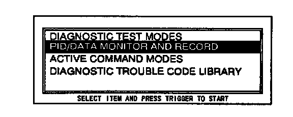 5. Connect the SSTs (NGS tester) to the data link connector and select the "PID/DATA MONITOR AND RECORD" function and press TRIGGER.