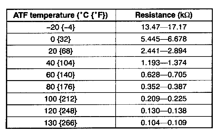 TRANSAXLE FLUID TEMPERATURE (TFT) SENSOR INSPECTION [GF4A-EL]On-Vehicle Inspection