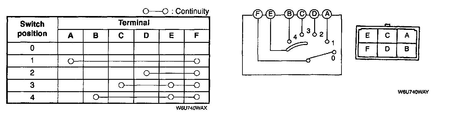 Check for continuity between the fan switch terminals by using an ohmmeter.