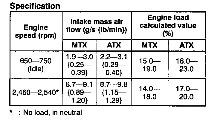 NOTE: The NGS shows the mass air flow rate and load value.