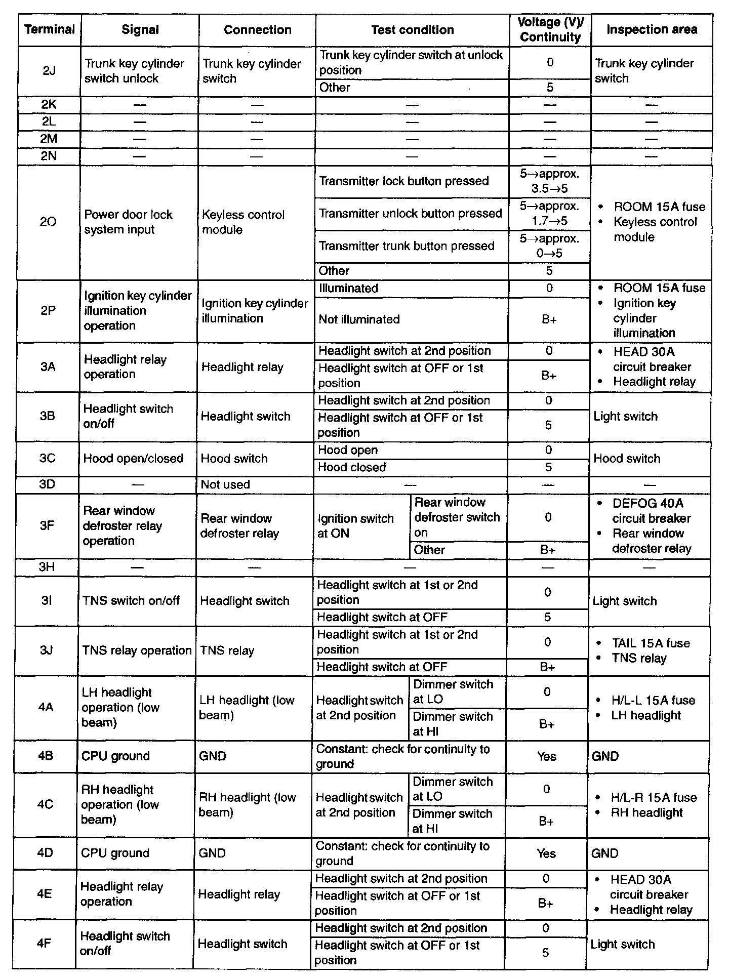 Central Processing Unit (CPU) Terminals 2J - 4F:
