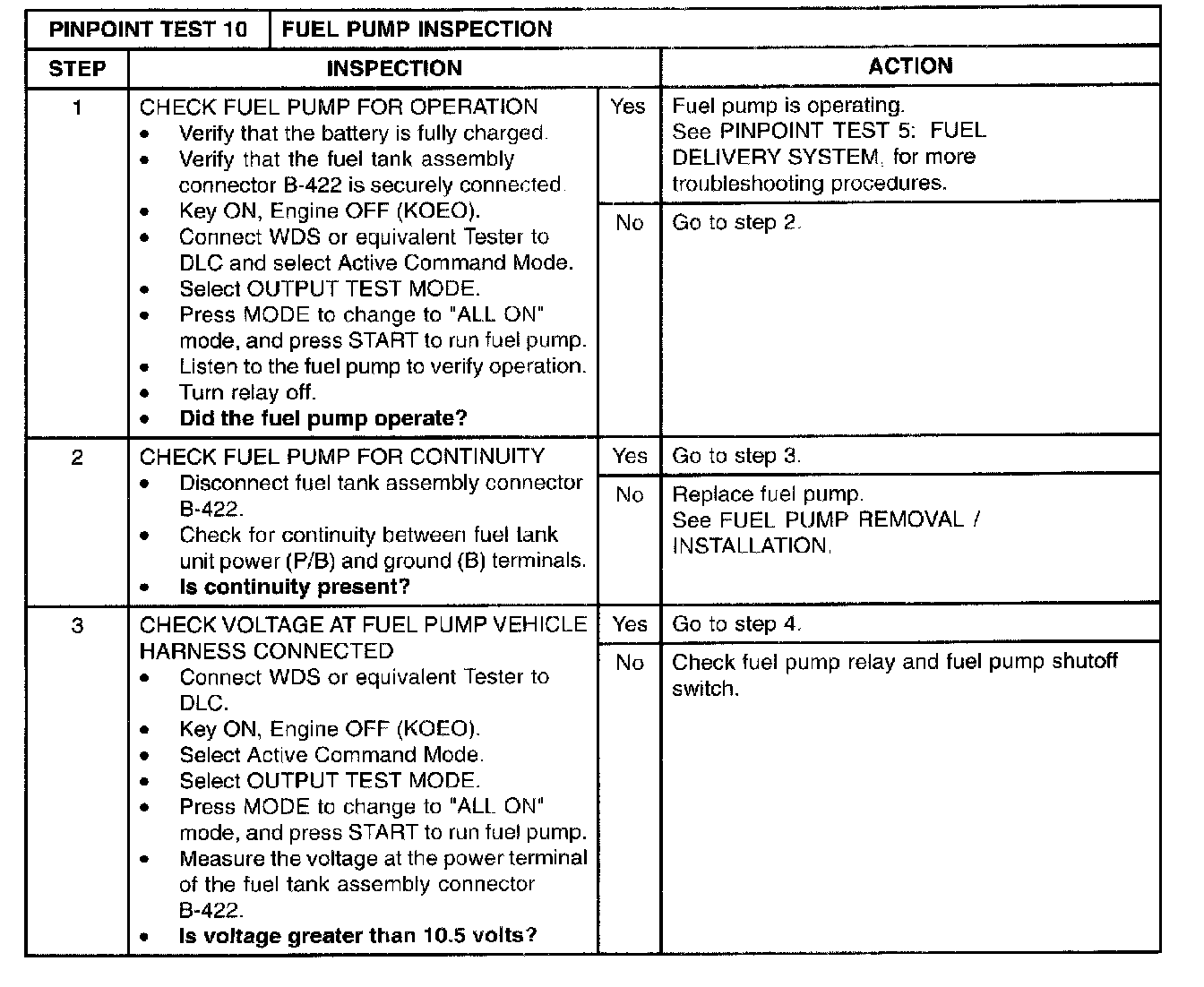 Test 10: Fuel Pump Inspection