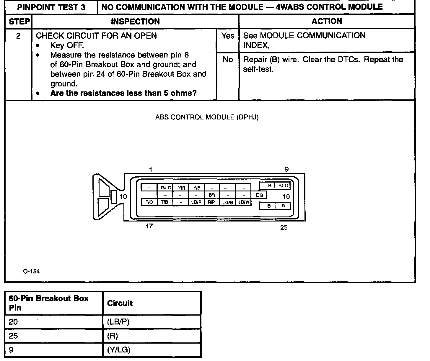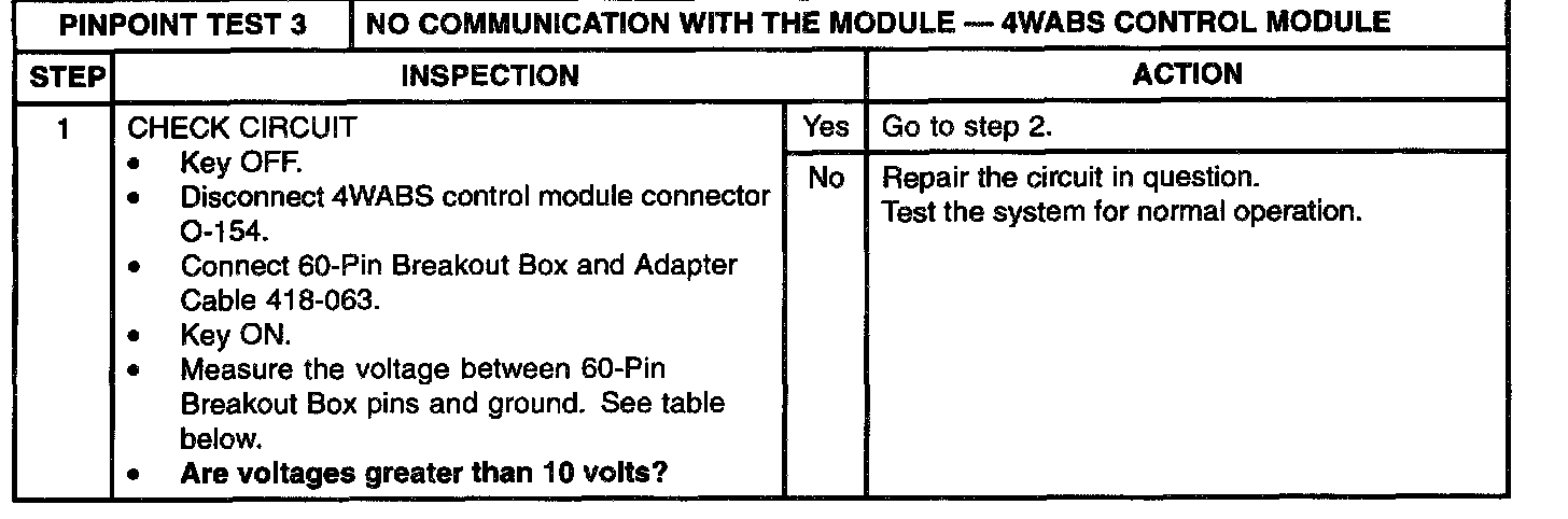 PINPOINT TEST 3: NO COMMUNICATION WITH THE MODULE-4WABS CONTROL MODULE
