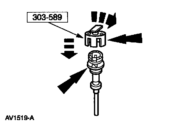 1. Install the special tool on the camshaft synchronizer by rotating the tool until it engages the notch in the camshaft synchronizer housing and the armature.