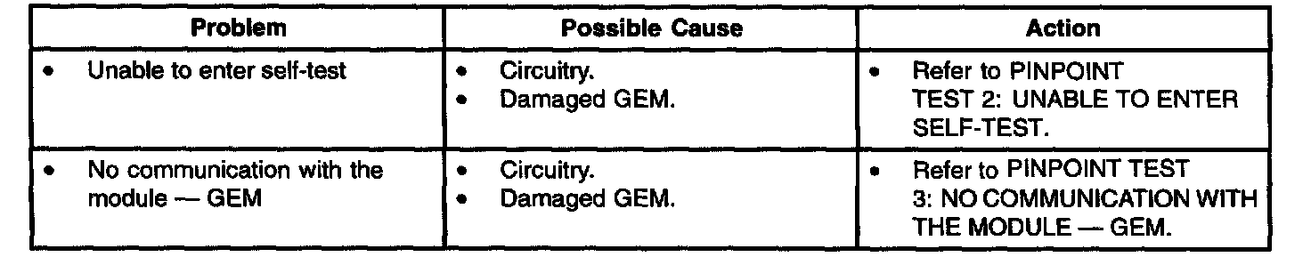 Generic Electronic Module (Gem) Symptom Troubleshooting Chart