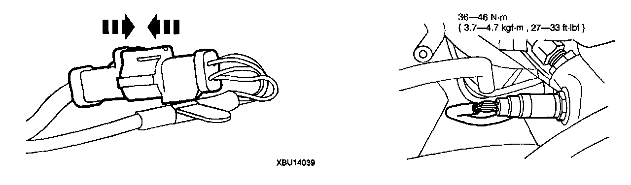 Tightening torque: { 36 - 46 N.m, 27 - 33 ft.lbf }